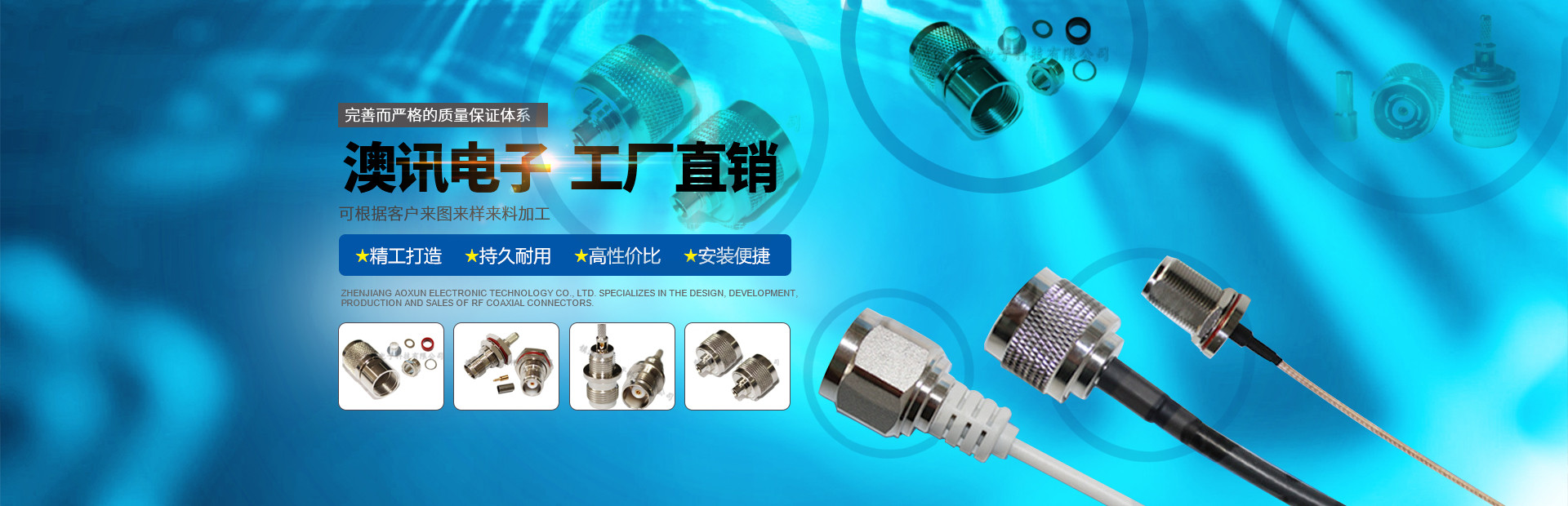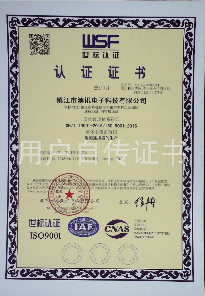 鎮(zhèn)江市澳訊電子科技有限公司,占地面積5000平方米,現(xiàn)有員工近百名,各類技術(shù)人員占15%。我公司專業(yè)從事射頻同軸連接器的設(shè)計(jì)、研制、開發(fā)、生產(chǎn)、銷售。
